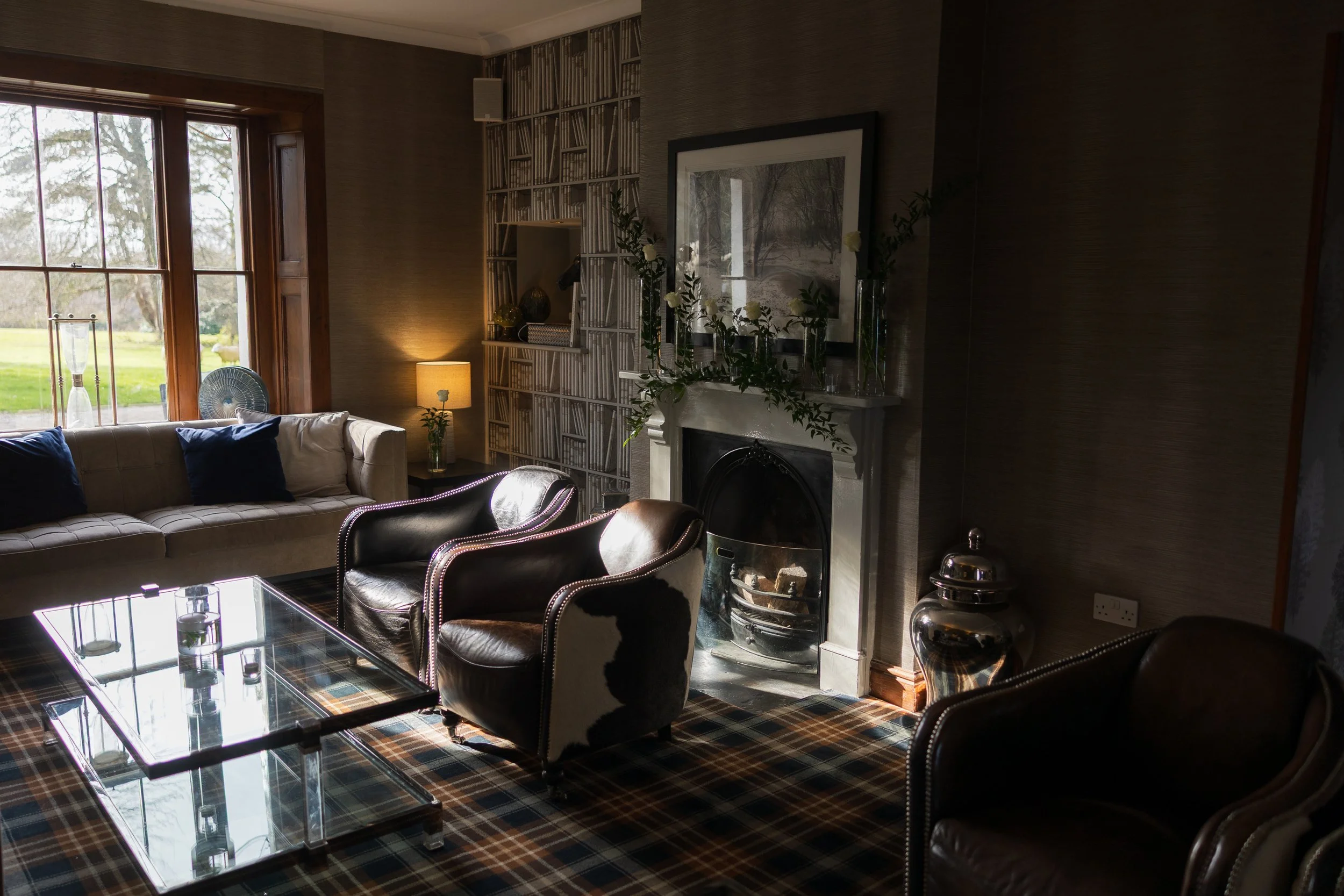 Before you have seen a single flower arrangement or caught sight of the bride, the smell of the open fireplaces reaches you first. It is the kind of warmth that feels less like a venue and more like someone's home at Christmas. That quiet, familiar invitation to exhale — it sets the tone for everything that follows.