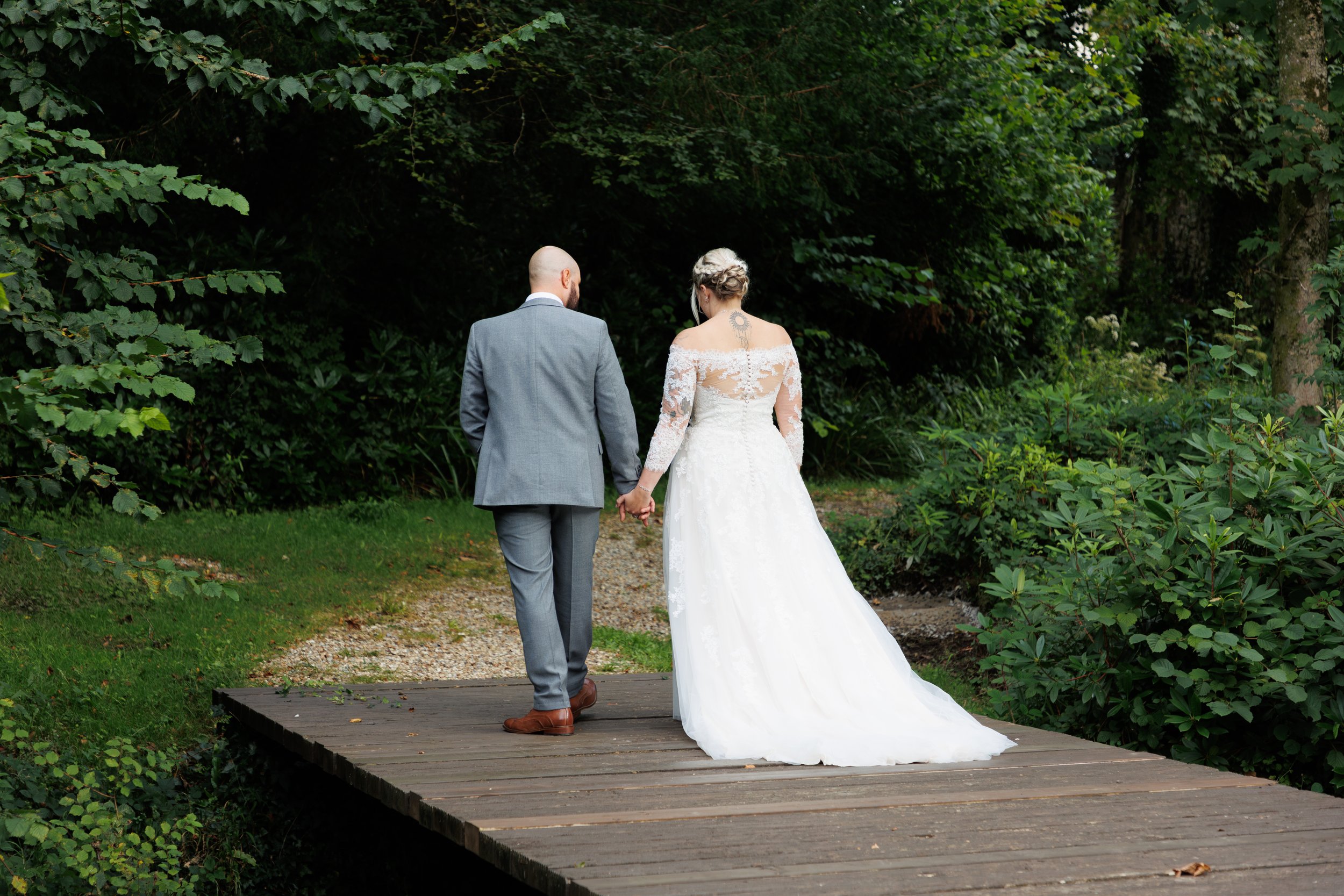 There's a quietness to that spot that's hard to find anywhere else on the estate. The water moves below you, the trees close in gently around the path, and suddenly the day slows right down. It's where couples exhale. Where they stop thinking about guests and schedules and simply stand together for a few minutes — and those are always the photographs that feel most true.